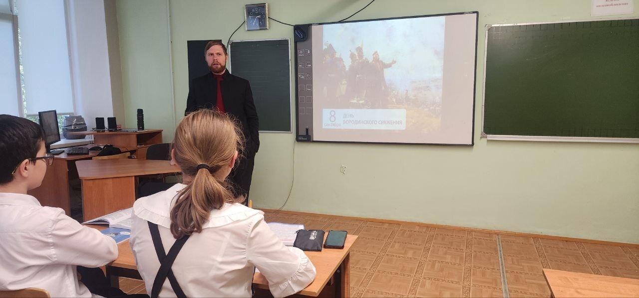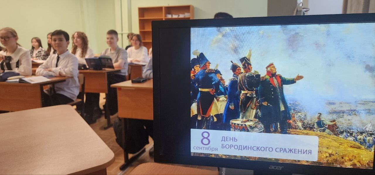 Сегодня ученики нашей школы на уроках истории говорили о событиях Бородино, вспомнили ключевые события сражения, отдали дань уважения и памяти тем, кто сражался за свою Родину, проявлял мужество и самоотверженность.