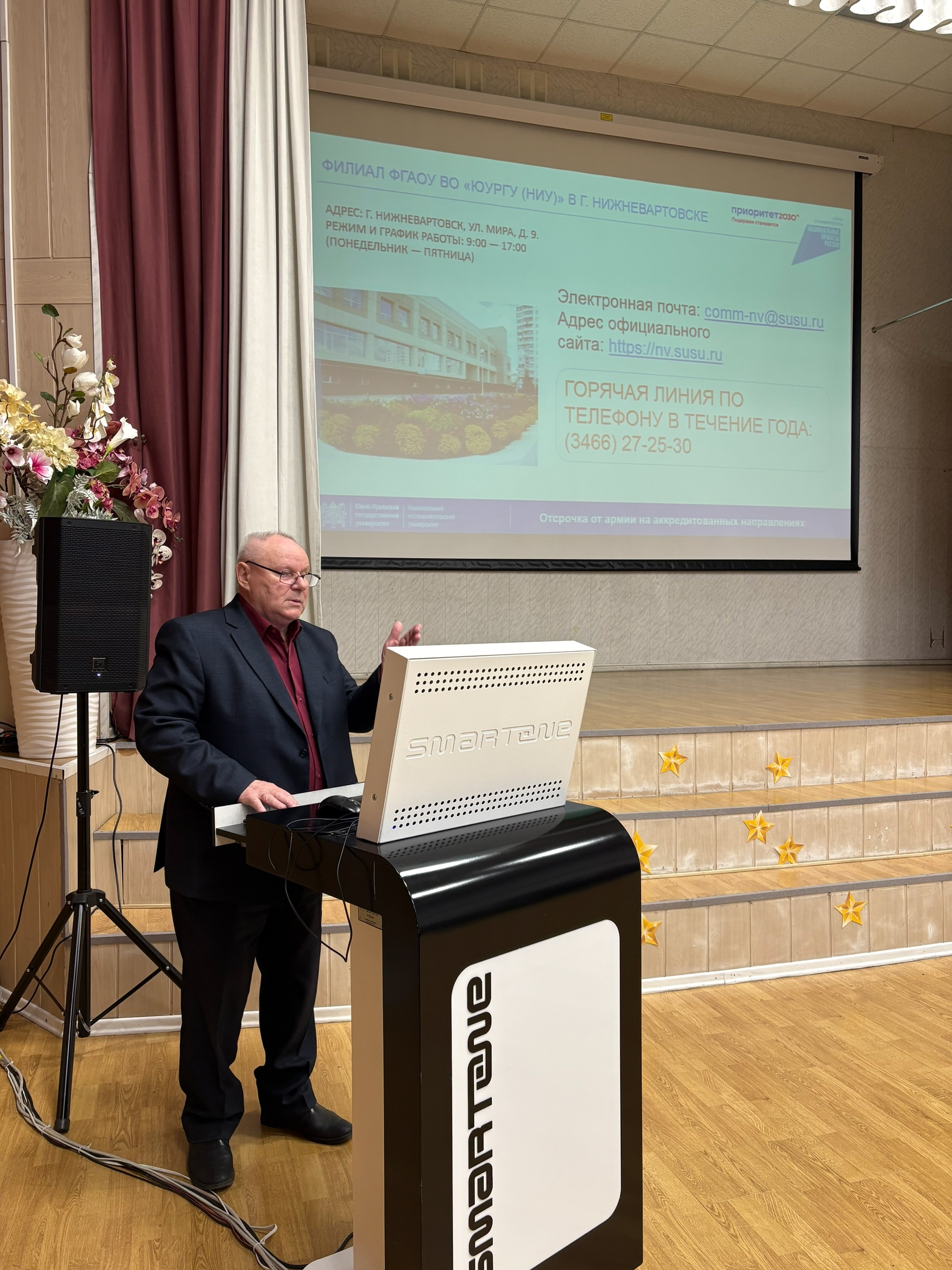 В своем выступлении представитель вуза рассказал о структуре учебного заведения, порядке поступления, условиях обучения.